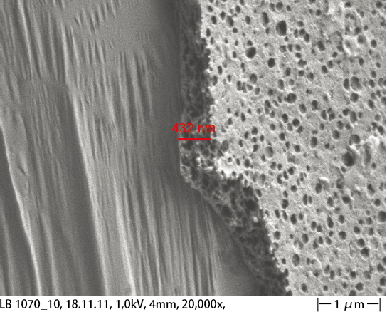 就鋅涂層的預處理而言,還有的問題是所謂的鋅涂層公司噴涂后的陳放鈍化,難以控制。圖1是顯微照片,顯示非金屬的、多孔的臨時性保護聚合物在金屬底材上的粗斷面。若在噴涂粉末涂料之前沒有除盡,就可能導致涂層的附著力問題。有時,這將會導致防腐蝕性差,以及粉末涂料涂層的脫落等。